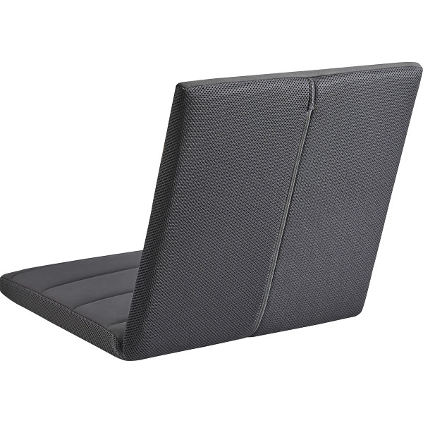 背もたれ付き。背中から腰とお尻までしっかり支えてくれるので、長時間の座り疲れをサポートします。持ち運びしやすい二つ折りタイプです。