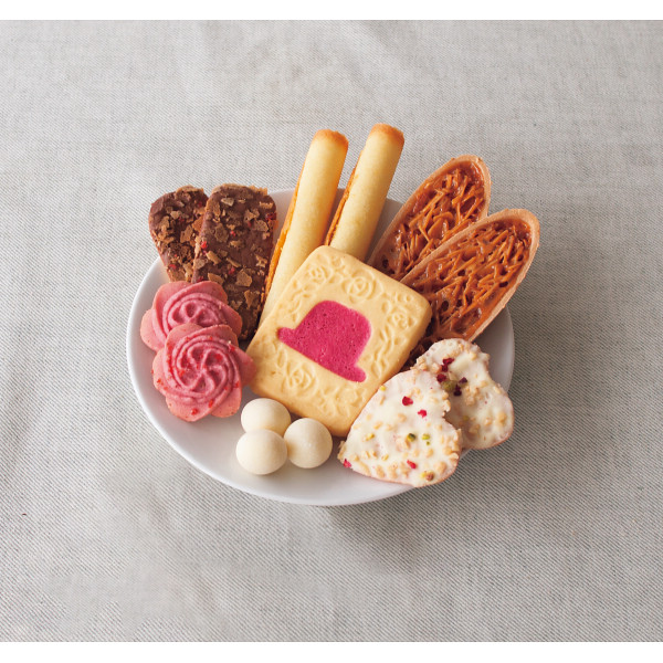 ●ホワイトボール(アップル風味)×5、レッドハット・ストロベリークッキー・ナッツベリーハート・チョコクランチ・ラングドシャロール・バニラアーモンド×各2(7種17個入×2箱)