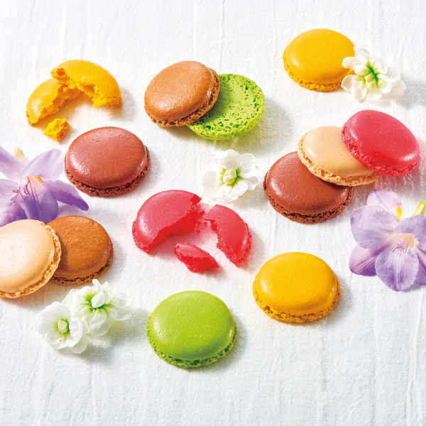 カラフルなマカロンの生地を二度焼きしたラスク。サクサクした食感と、アーモンドの風味豊かな味わいです。