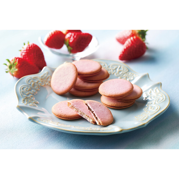 福岡県産あまおうを使用したいちごピューレを練りこんだサクサクのラングドシャクッキーでオリジナルのチョコミルクとホワイトチョコをサンドしました。優しい食感、滑らかなくちどけをお楽しみください。