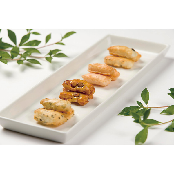 天然水と国産もち米を使用した、ふっくらソフトなおかきです、味は塩味、欧風、あまから醤油の3種です。