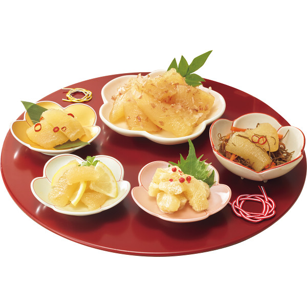ニシンから取り出した数の子を、北海道で鰹だしをきかせた白醤油ベースのたれとニボシだしで凍結まで約48時間チルド庫でたれを染み込ませます。2日間じっくりと熟成させ上品な味をしっかりとしみこませました。折れ子を使用しております。