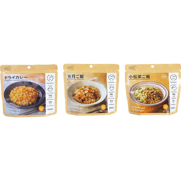 ●五目ご飯・小松菜ご飯・ドライカレー各100┣g┫×各1、大豆たっぷりカレーリゾット300┣g┫、鹹粥・香菇痩肉粥×各340┣g┫・りんごが決め手の生姜焼き145┣g┫・梅と生姜のサバ味噌煮135┣g┫、トロトロねぎの塩麹チキン150┣g┫・ひじきときのこのみぞれハンバーグ190┣g┫、魯肉飯120┣g┫、香菇鶏湯180┣g┫、麻油鶏190┣g┫、獅子頭220┣g┫、7種野菜のコーンポタージュ・ポルチーニ茸とハト麦のスープ・タッコムタン各180┣g┫、あずきマフィン(2個入り)・オレンジマフィン(2個入り)、いそべ餅137.5┣g┫、チョコバー40┣g┫、厚焼きたべっ子どうぶつ120┣g┫